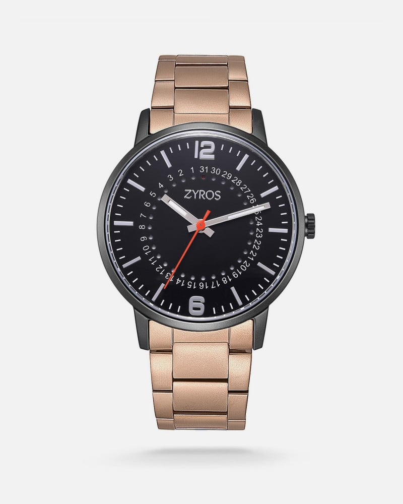 ساعه رجاليه من ماركة زايروس بسوار من الستانلس ستيل باللون الروز قولد، صممت الساعه بطابع كلاسيكي عصري ، هذه الساعه خيارك الأمثل لإضفاء لمسة أناقه على إطلالتك في العمل او في العطلات ، ساعة بميناء غير تقليدي بعداد للأيام يتوسط الميناء بشكل ملفت يزيد من أناقه طلتك ، يمكنك تنسيق الساعة مع طله كاجول لتكتمل أناقتك ، هذه الساعه إختيارك الامثل لليوم وكل يوم