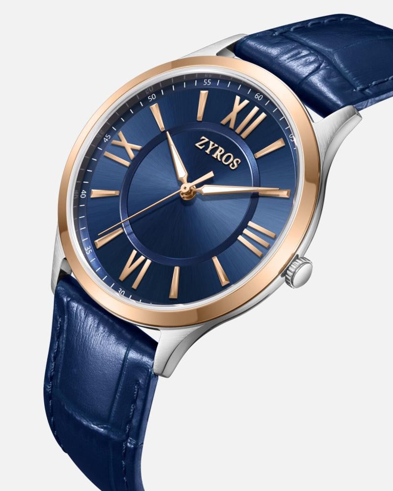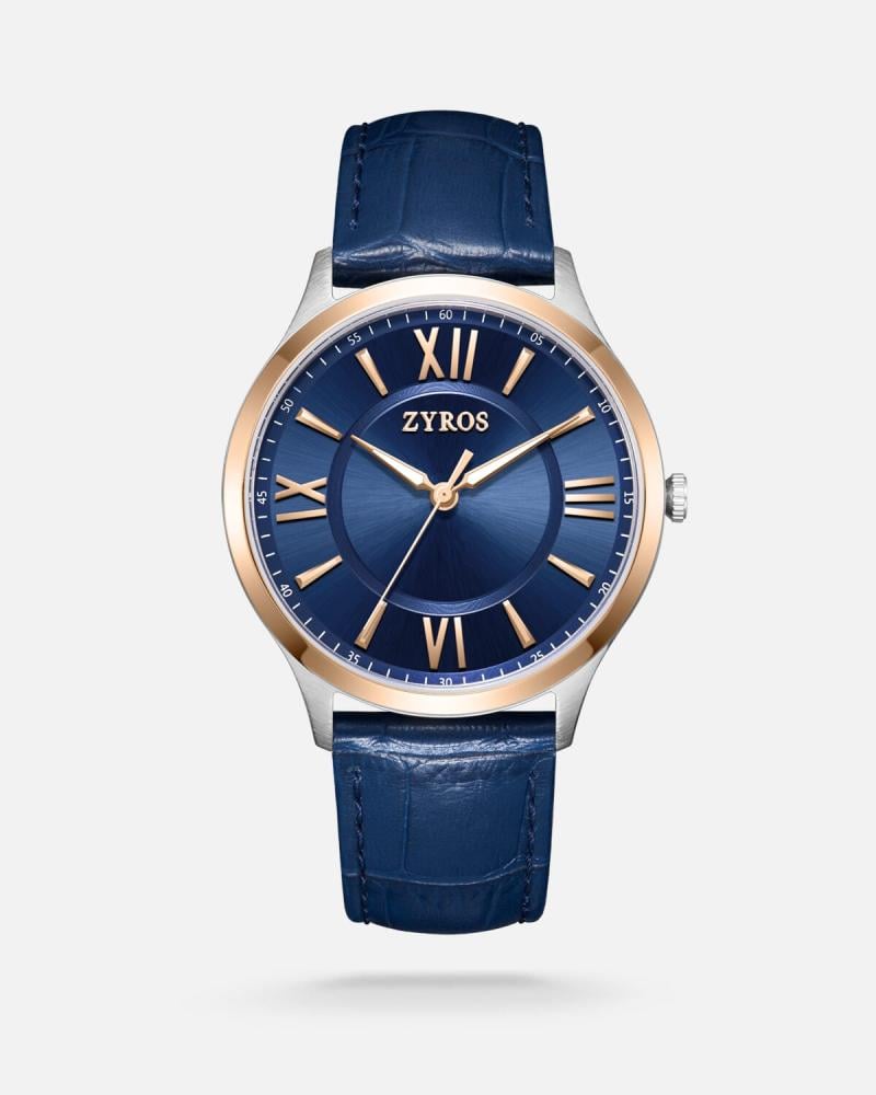ساعة رجالية فاخرة تنبض بالأناقة الكلاسيكية، بإطار مصقول يحيط بميناء أنيق هادىء، يكمله سير جلدي ناعم يعكس الذوق الرفيع والرقي