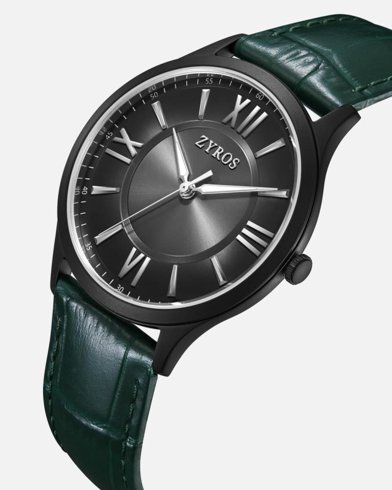 - السير: بلون أخضر من الجلد النباتي الفاخر، مقاوم للخدوش، مستدام، وصديق للبيئة، ويجمع بين المتانة والأناقة .
