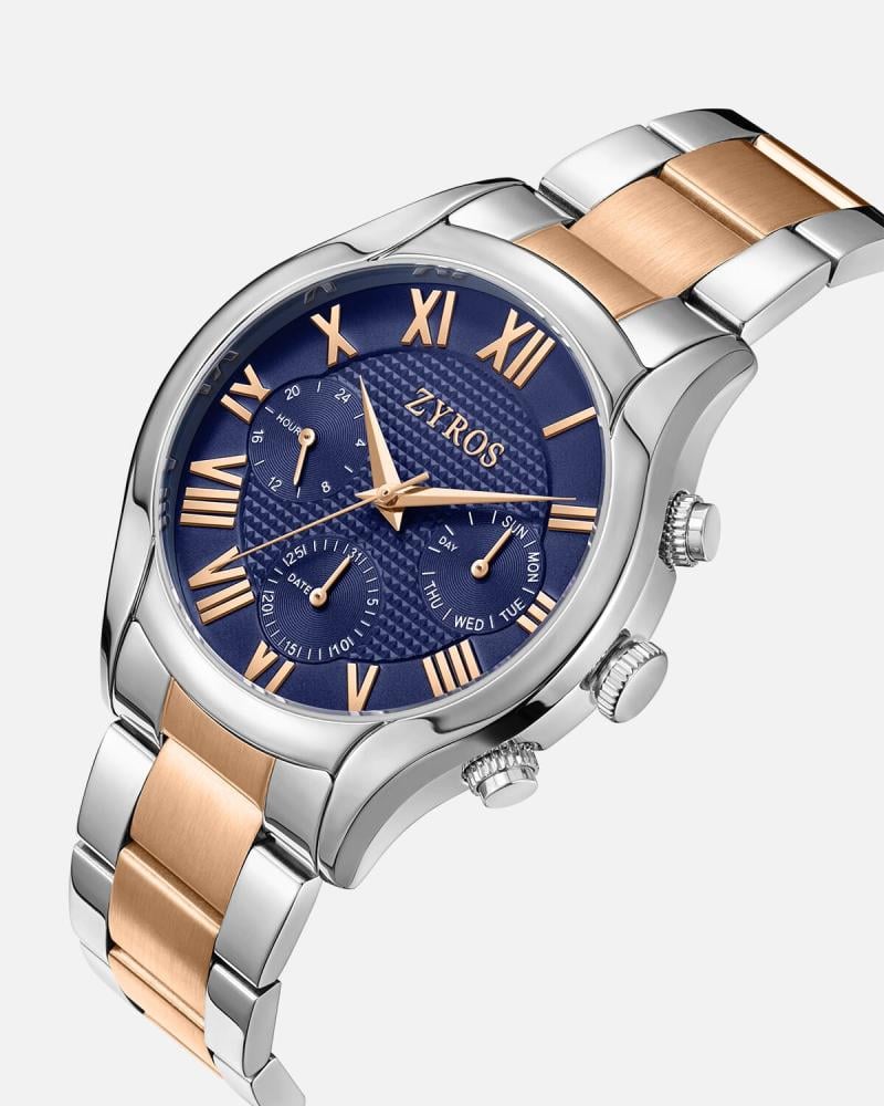 تجسيد للأناقة الكلاسيكية بلمسة عصرية متجددة، ترتقي بإطلالتك إلى آفاق جديدة. هيكل من الفولاذ المقاوم للصدأ، بتصميم أنيق يجمع بين القوة والجمال، يعكس بريق شخصيتك الفريدة. ميناء تتناغم فيه الأرقام الرومانية البارزة، مع عدادات فرعية دقيقة، تمنحك قراءة واضحة للوقت في جميع الظروف. عقارب مضيئة، تضيف لمسة من الفخامة والتميز، وتضمن لك قراءة مثالية حتى في الظلام. سوار من الفولاذ المقاوم للصدأ، بتصميم متناسق، يمنحك راحة لا مثيل لها، وثباتًا يواكب إيقاع حياتك اليومية. حيث يلتقي التصميم الكلاسيكي باللمسة العصرية، لتكون إضافة مميزة إلى إطلالتك، ورفيقًا دائمًا في جميع مناسباتك.