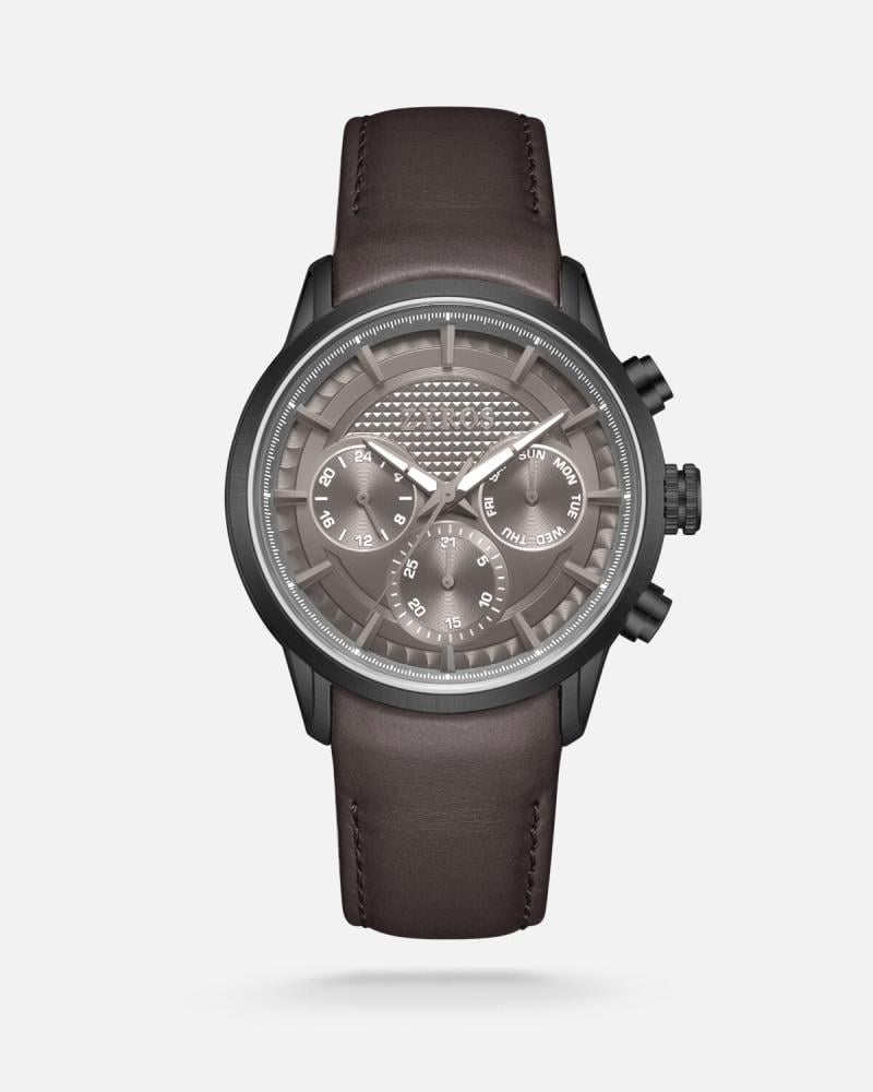 ساعة عِز رجالية بتصميم فاخر بلون بني غامق
