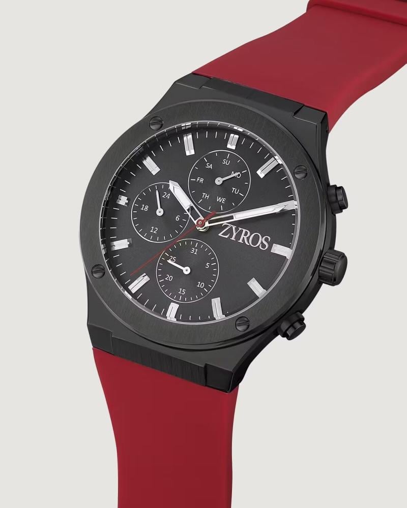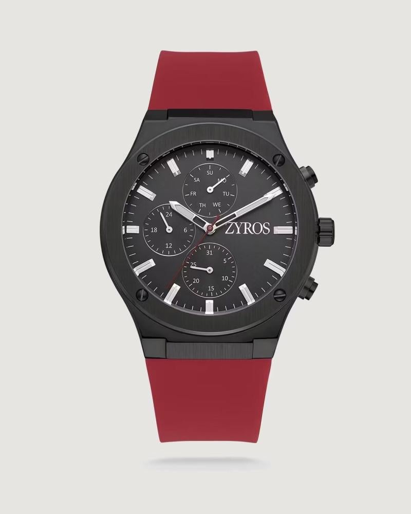 - ساعة رجالية بسير من الربل الفاخر باللون الأحمر