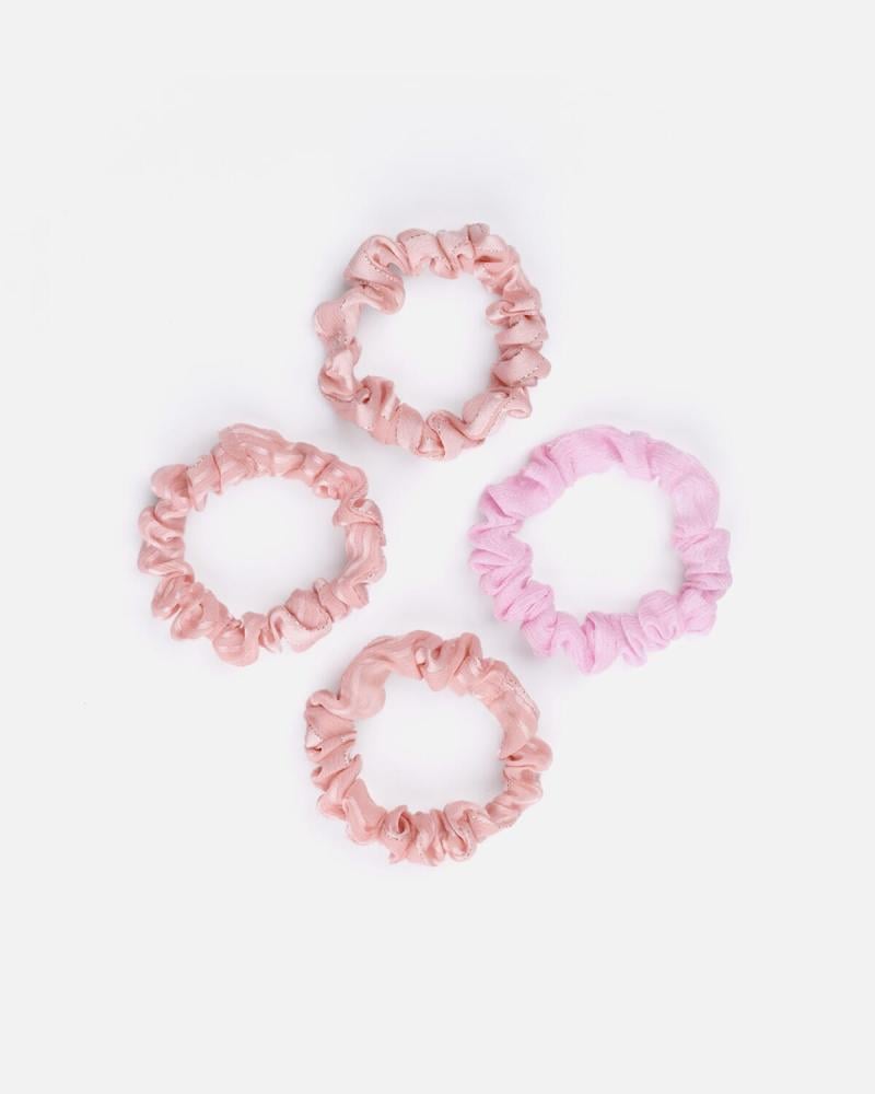 مجموعة من ربطات الشعر المصنوعة من قماش مطاطي مجعد، تتنوع بين التصاميم البسيطة والسادة باللون الوردي، تضفي لمسة أنثوية ساحرة. تتميز بحجمها المناسب للارتداء اليومي، مما يجعلها خيارًا عمليًا لإضافة لمسة أنيقة وعفوية إلى تسريحات الشعر.