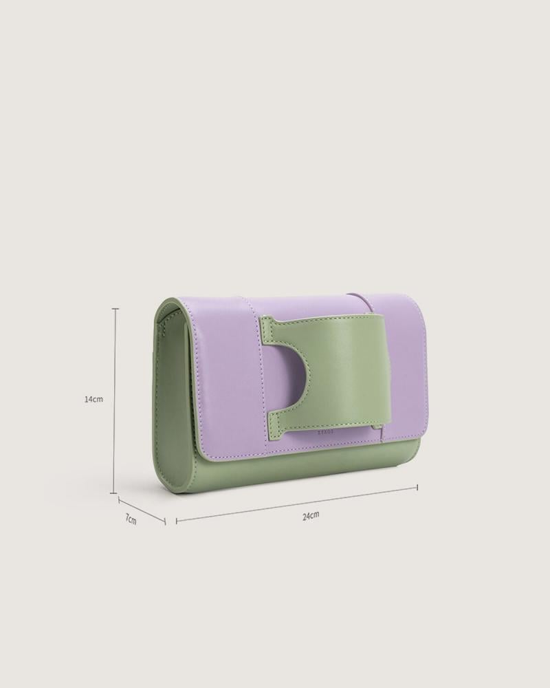 - شنطة يد نسائية من الجلد باللون الأرجواني والأخضر