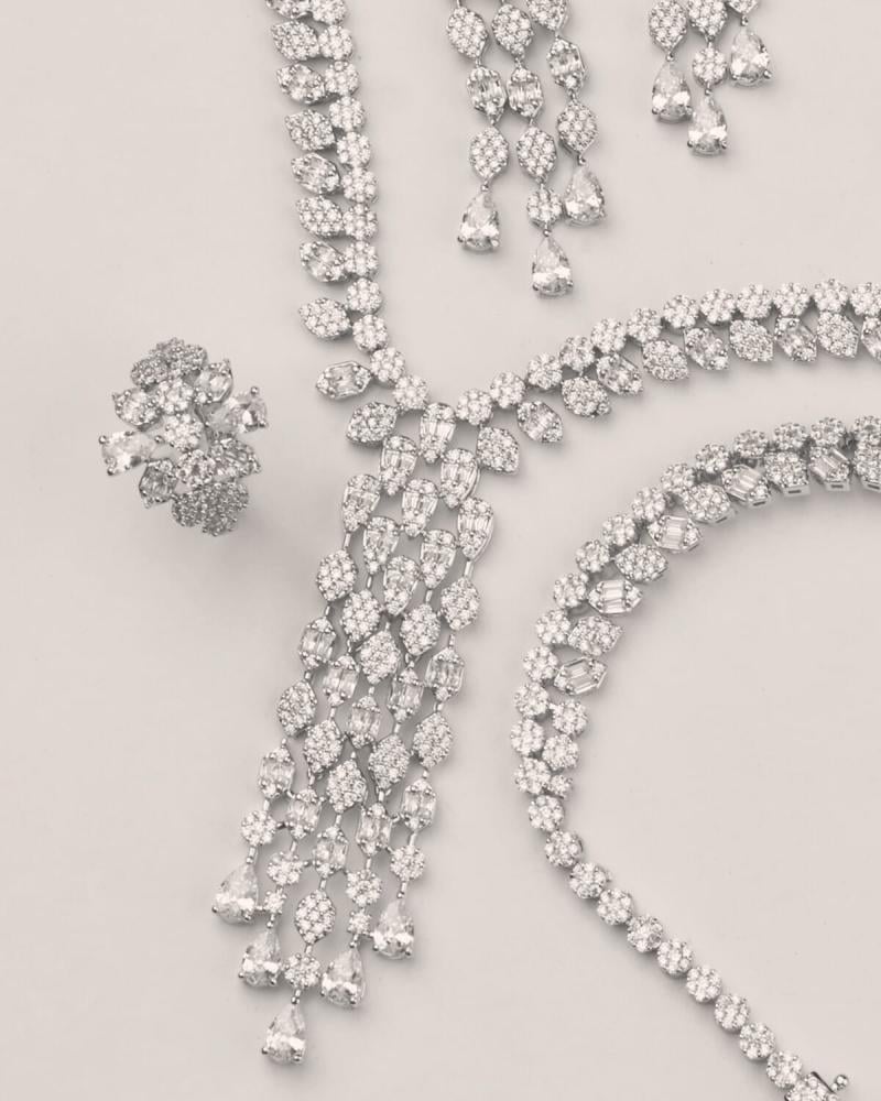طقم اكسسوار نسائي ملكي باللون الفضي