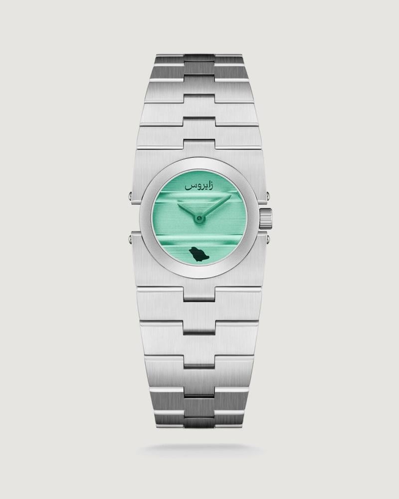 سيرها الفضي من الستانلس ستيل ينساب برقة حول معصمك، ليعكس وهجًا يتناغم مع حضورك، ميناؤها الأزرق التيفاني الصغير، بحجم 19 مم، يحتضن الضوء برقة، بينما الإطار الفضي يحيط بها ليبرز جمالها.