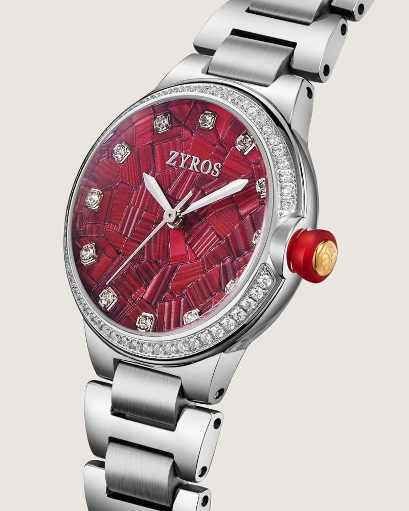 - ميناء الساعة باللون الأحمر بمقاس: 31 mm