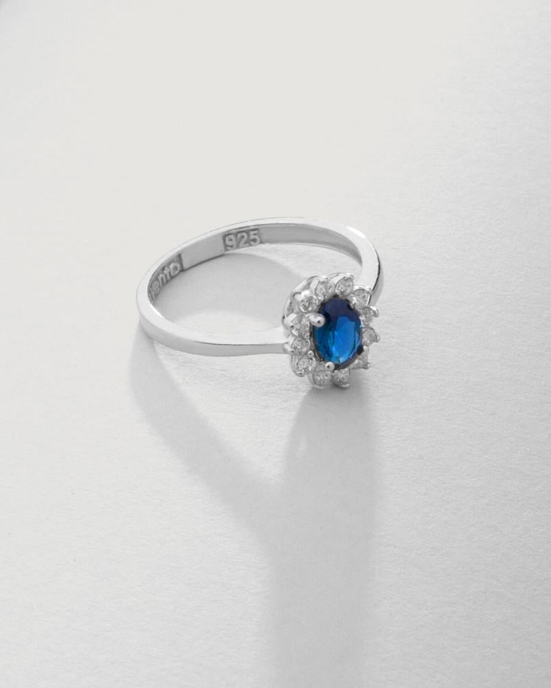 خاتم يأسر العين من النظرة الأولى، يتوسطه حجر كريم بلون أزرق عميق كنبضة حب خالدة، تحيط به هالة من الفصوص اللامعة كأنها نجوم تحرس ليلًا من السحر. تصميمه الفضي الأنيق يعانق الحجر في توازن بين البساطة والرقي، ليُضفي على من ترتديه لمسة من الفخامة الهادئة والأنوثة الواثقة. قطعة تحكي عن الجمال الذي لا يحتاج إلى صخب ليُعلن حضوره