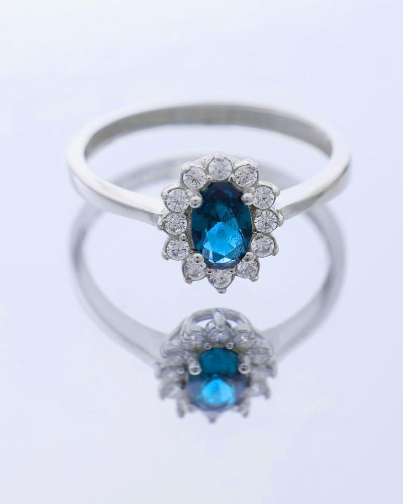 - وصف الخاتم: خاتم بتصميم أنيق مرصع بفصوص الزركون ويتتزين بحجر زركون بلون أزرق .