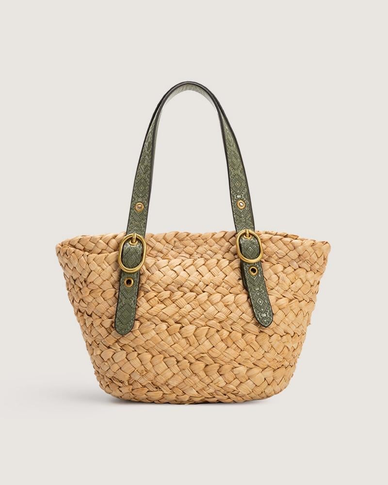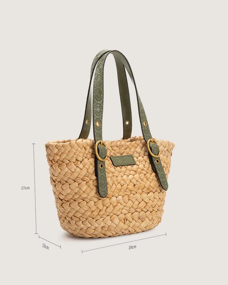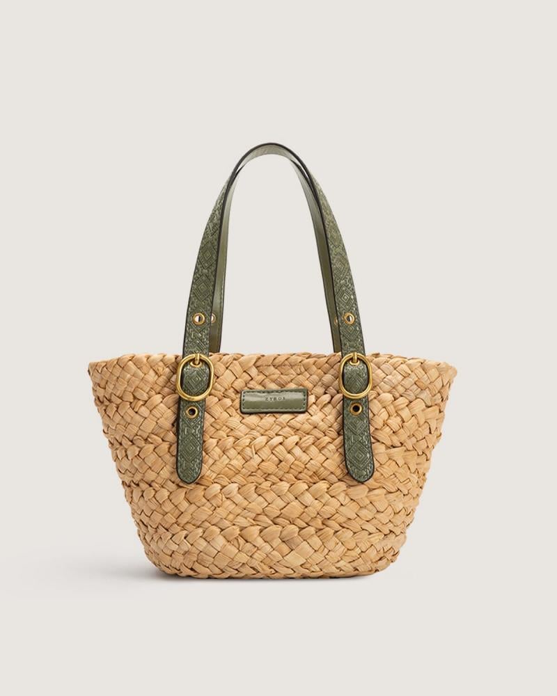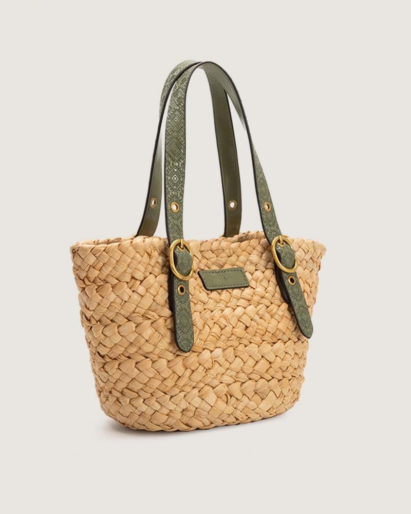 - شنطة نسائية من الخزف (الخيش) وبيد مقوسة من الجلد بلون أخضر