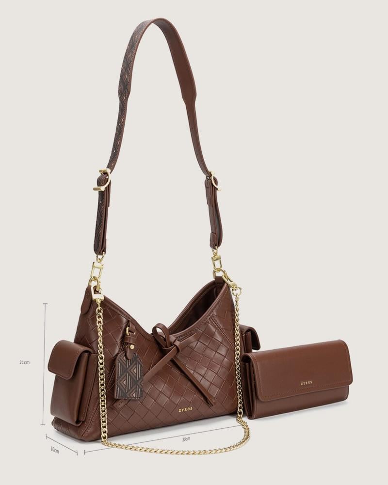 شنطة يد أنيقة مصنوعة من الجلد النباتي الفاخر، تجمع بين الأناقة والطابع الكلاسيكي . تصميمها العصري بحجم كبير يجعلها مثالية لإطلالتك اليومية، حيث تضفي لمسة من الرقي على كل تفاصيل مظهرك. الخامة الداخلية من المخمل تضفي شعوراً بالراحة والفخامة، مما يضمن لك تخزين ممتلكاتك بأناقة. تفاصيلها الدقيقة تمنحك مرونة في تنسيقها مع مختلف الأزياء . شنطة تجمع بين الجمال والعملية، لتكون الشنطة المثالية لكل يوم.