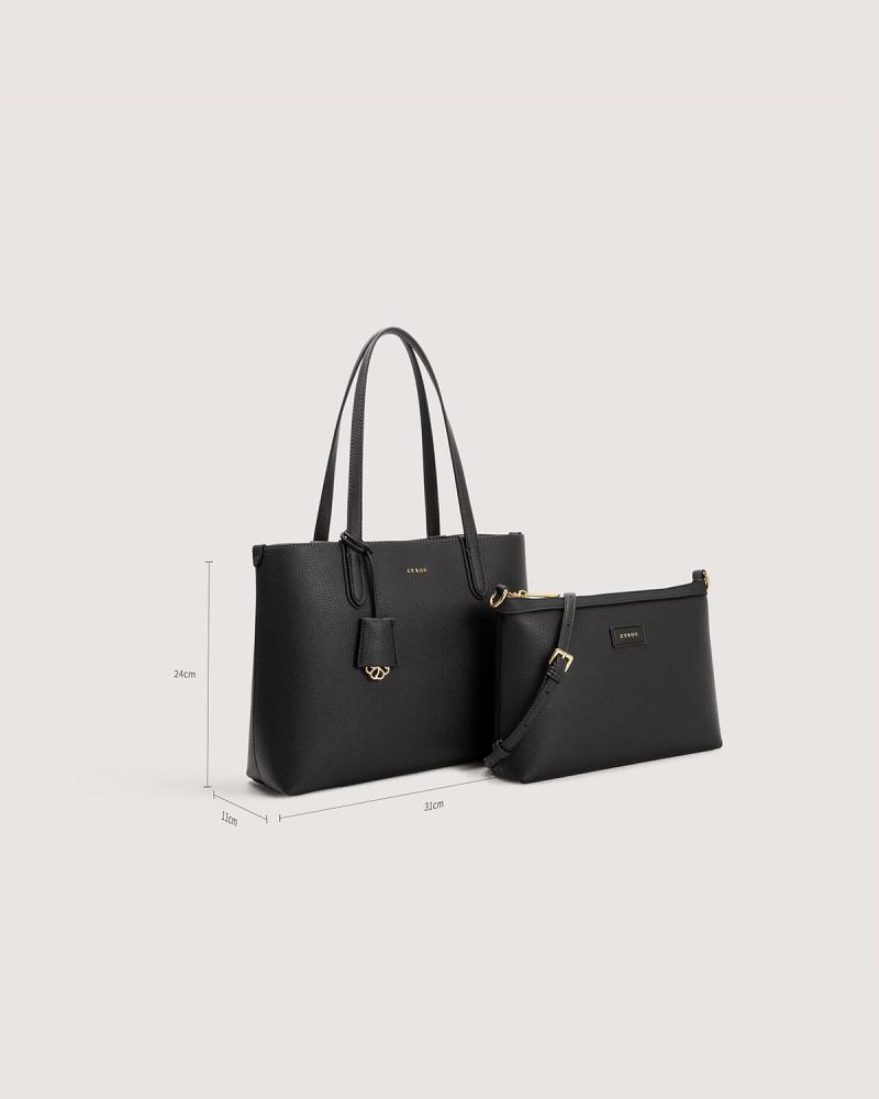 - طقم من شنطتين نسائية من الجلد باللون الأسود