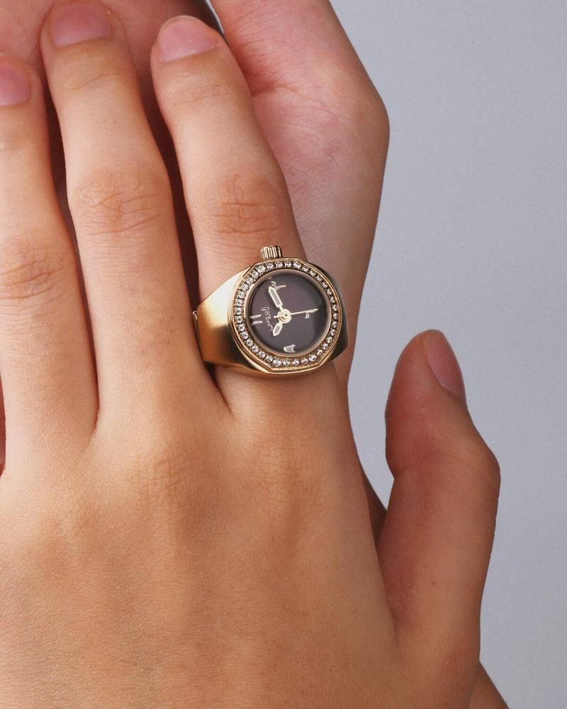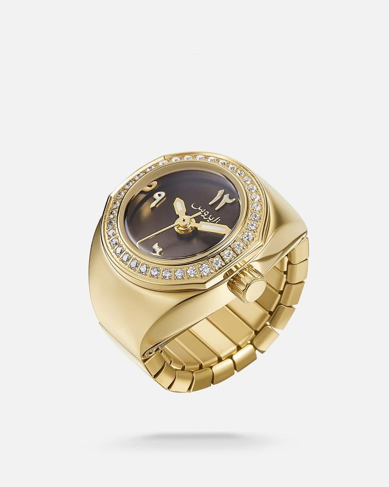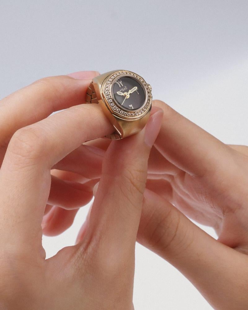ساعة بتصميم مبتكر وأنيق، حيث تلتقي الوظيفة بالجمال في قطعة واحدة فريدة. تأتي الساعة بشكل خاتم ساحر، مما يضيف لمسة من التفرد والتميز. هذا التصميم الجريء يدمج بين فكرة الإكسسوار الكلاسيكي وعملية الساعة، ليخلق قطعة فنية تأسر الأنظار. الأرقام العربية على وجه الساعة تضفي طابعًا تقليديًا راقيًا، بينما يعكس الإطار المعدني المتين في شكل الخاتم جمالية متميزة تجمع بين البساطة والفخامة. إن تصميم الساعة كخاتم ليس مجرد فكرة مبتكرة، بل هو تعبير عن ذوق رفيع وحس فني متفرد، مما يجعلها اختيارًا مثاليًا لمن يبحثون عن قطعة فنية تجمع بين الأناقة والوظيفة في تصميم واحد.