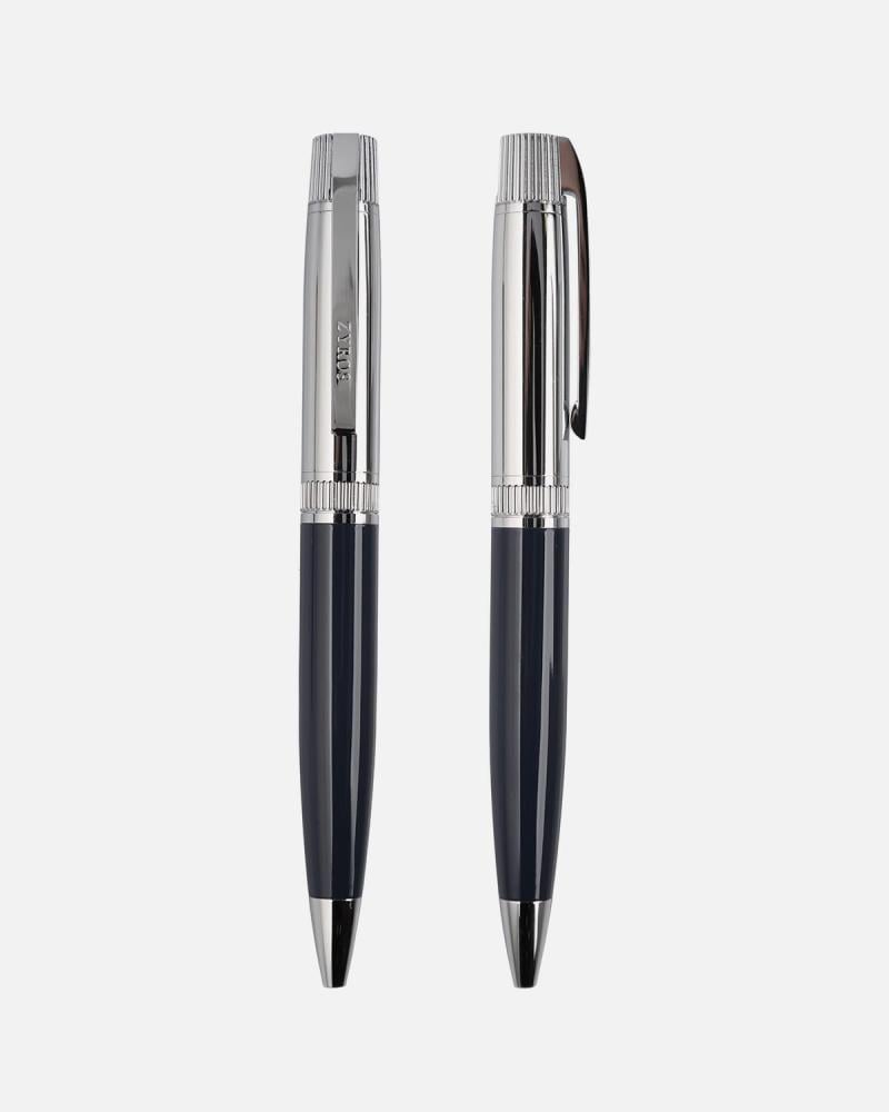 - القلم من المعدن باللون الفضي والأزرق