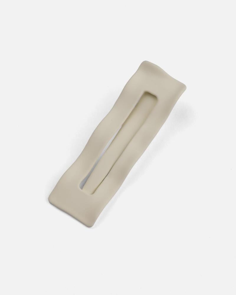 مشبك أنيق للشعر بتصميم راقٍ وبسيط، يعكس لمسة من الرقة والجمال. يحمل شكلًا متموجًا بلون أبيض .