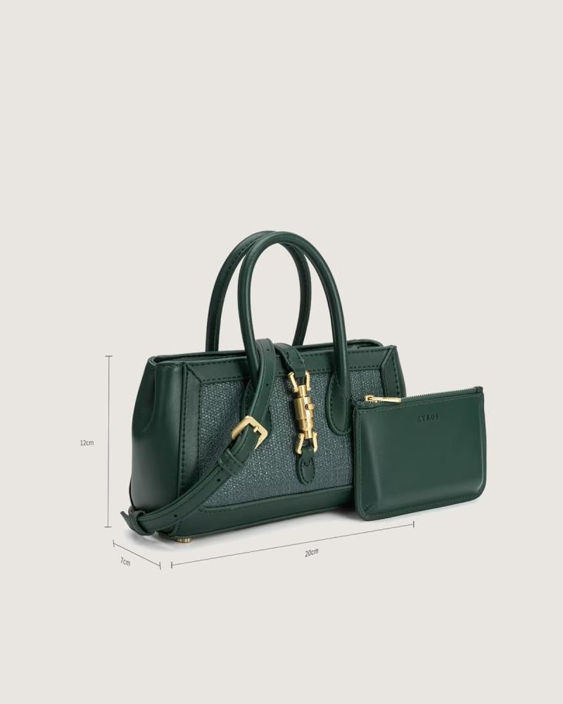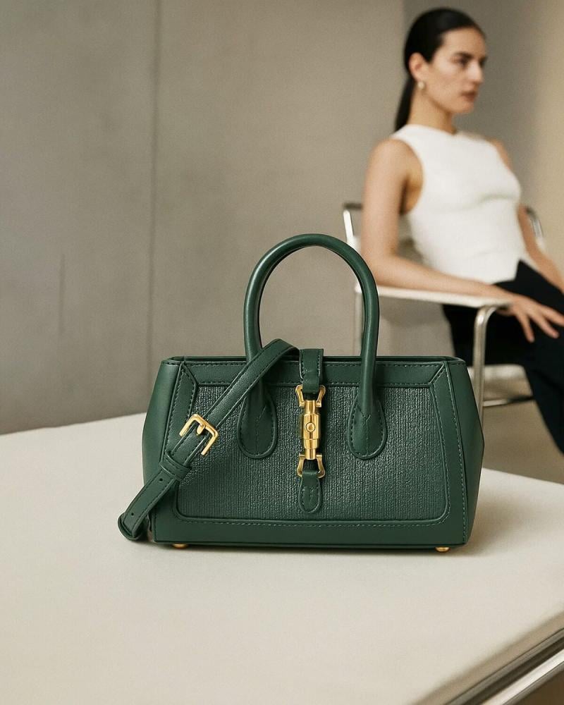 هذه الحقيبة الأنيقة بتصميمها الفاخر تجمع بين الكلاسيكية والحداثة بأسلوب راقٍ يعكس الذوق الرفيع ، بتصميم مستطيل أنيق يجمع بين الجلد الناعم والقماش المنسوج الفاخر، مما يمنحها ملمسًا فريدًا ومظهرًا استثنائيًا. تضيف التفاصيل المعدنية الذهبية لمسة من الفخامة، خاصة مع المشبك الأمامي الذي يمنحها طابعًا راقيًا وعصريًا في الوقت ذاته ، تناسب هذه الحقيبة الإطلالات الرسمية والكاجوال الفاخر، مما يجعلها خيارًا مثاليًا للمكتب، الاجتماعات، أو حتى الخروج بأناقة. قطعة لا غنى عنها لكل سيدة تبحث عن التميز!