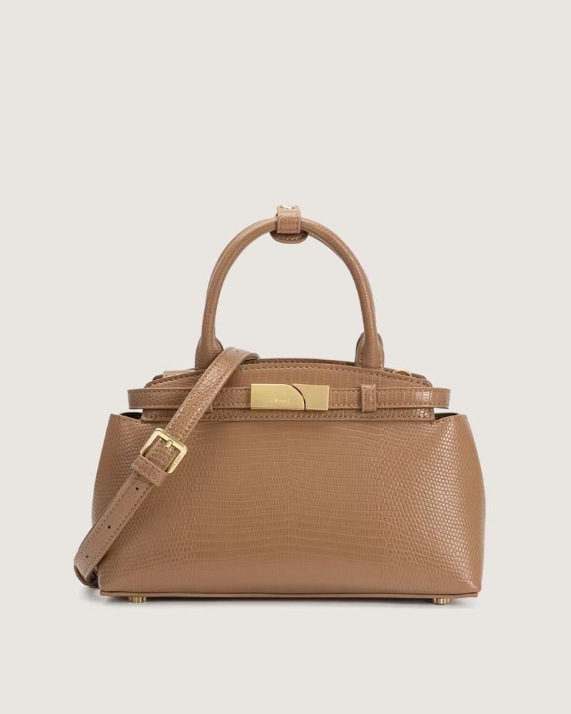شنطة أنيقة بتصميم فاخر يجمع بين الرقي والعملية . مصنوعة من جلد فاخر بنقشة التمساح لتضفي لمسة من الفخامة ، تتميز بيد مقوسة علوية من الجلد ، وحزام كتف قابل للتعديل لمزيد من الإطلالات ، شنطة تتزين بإبزيم معدني أنيق يعكس الطابع العصري ، مما يجعلها قطعة مثالية لإطلالة راقية ومتميزة في كل المناسبا ت.