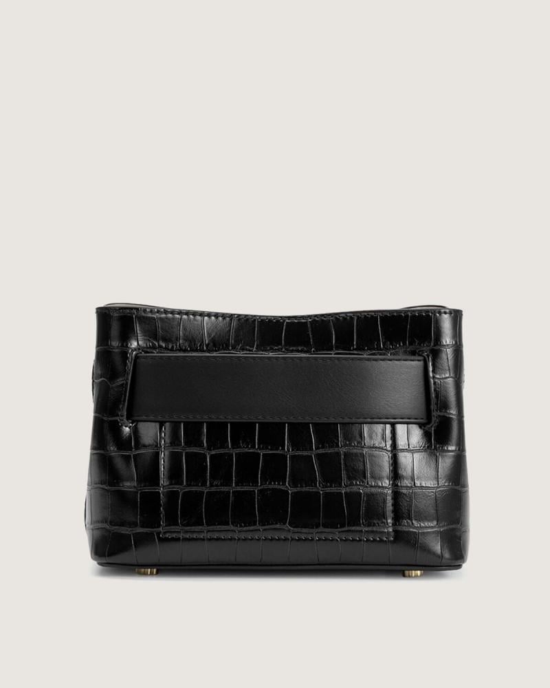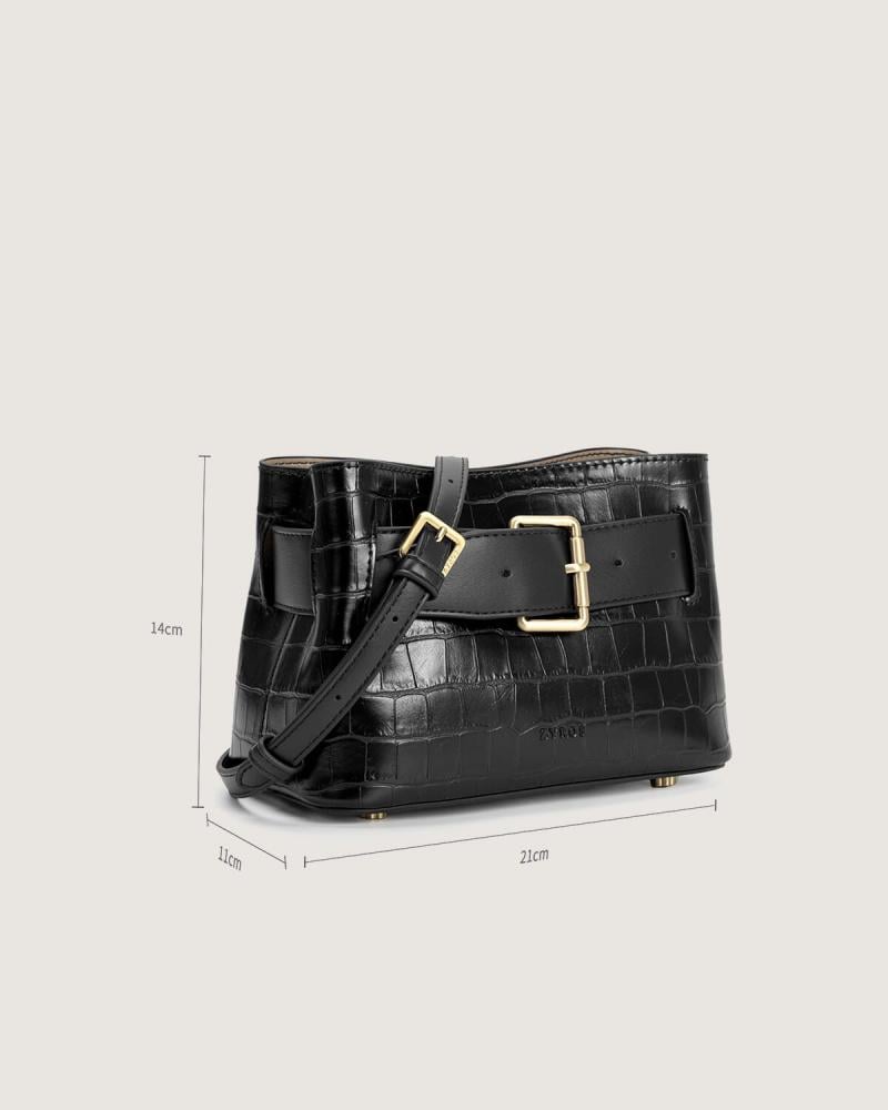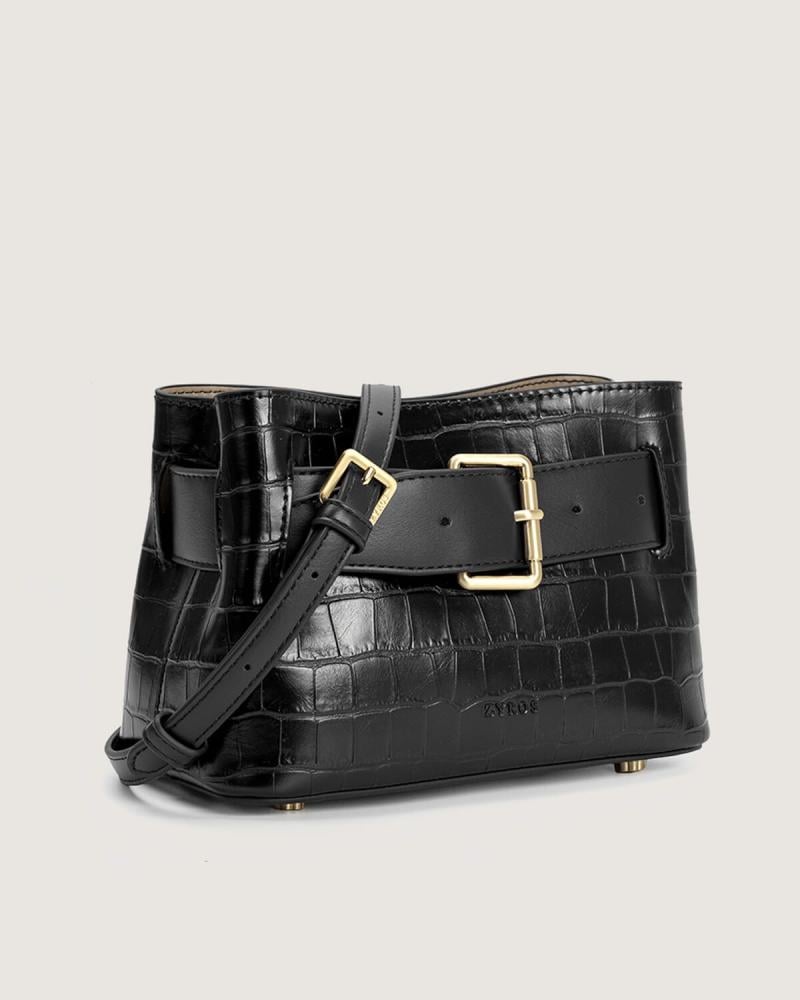 هذه الشنطة تجسيد للأناقة الراقية بلمسة من الغموض الساحر. بلونها الأسود العميق ونسيجها الجلدي الفاخر، تعكس هالة من القوة والرقي، كأنها قطعة من الليل تحمل أسرارك بأمان. تصميمها الهندسي البسيط يجعلها كلاسيكية خالدة، لكن الحزام الأسود بالقفل الذهبي في مقدمتها يضيف لمسة من الجرأة والجاذبية، كأنه سر ينتظر من يكتشفه. إنها ليست مجرد حقيبة، بل رمز للمرأة الواثقة التي تعرف كيف تجمع بين الغموض والجاذبية في كل خطوة .