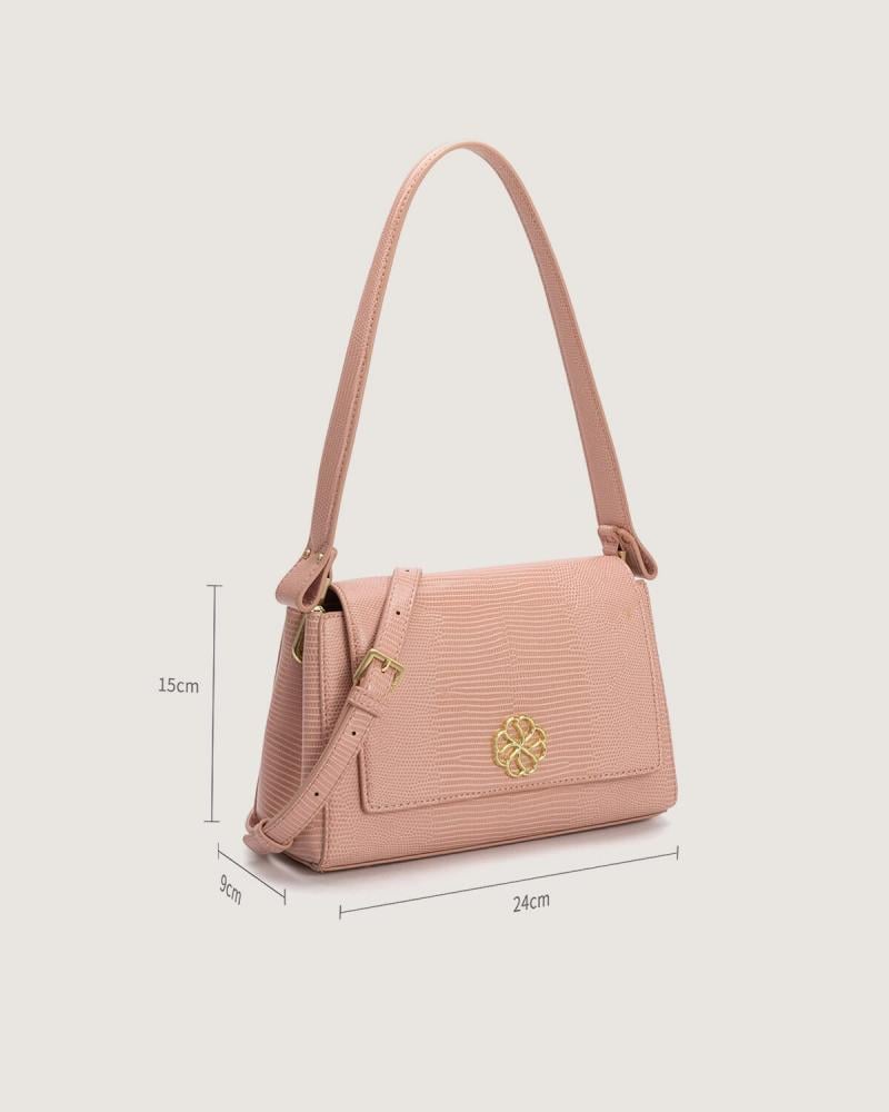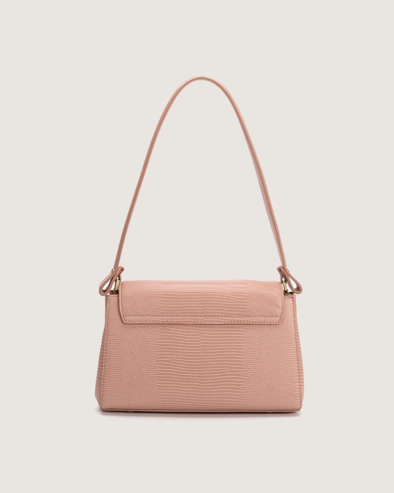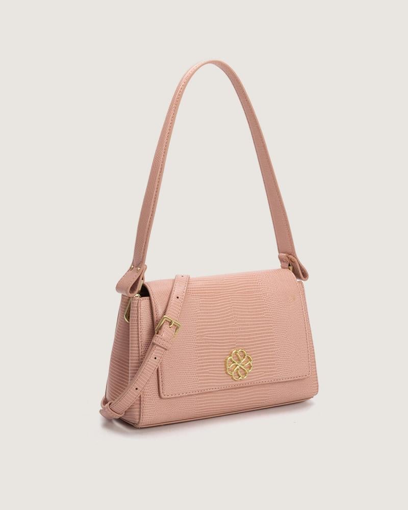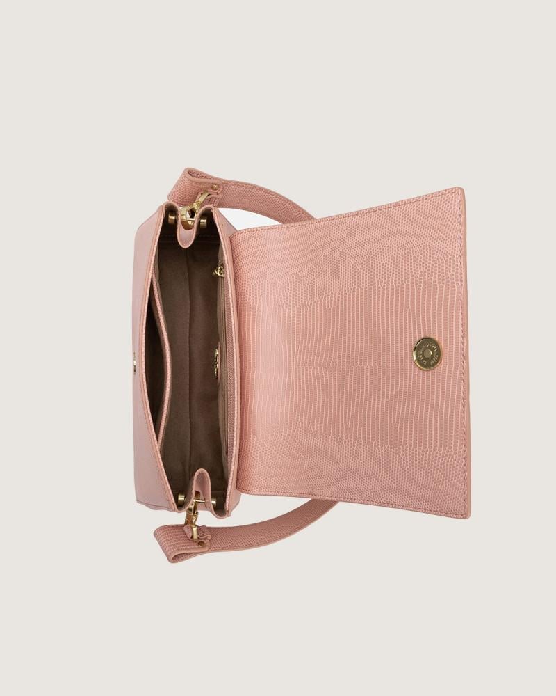 - شنطة من الجلد باللون الوردي بغطاء قلاب