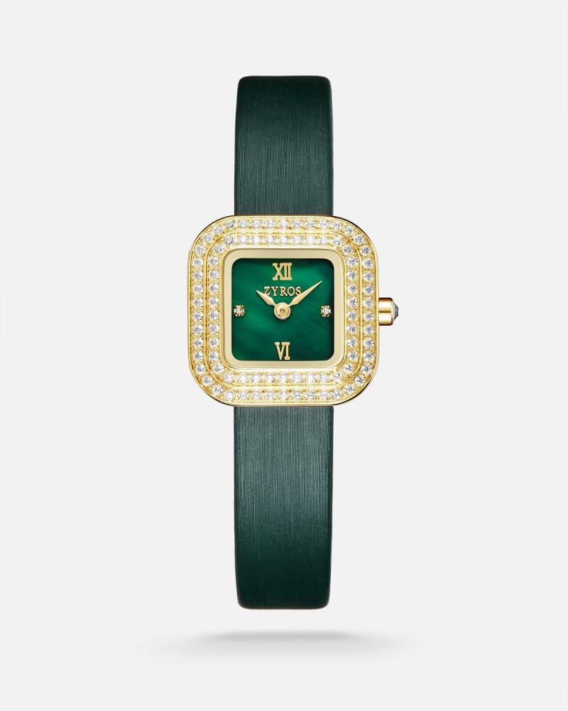 - الميناء: باللون الأخضر مع إطار باللون الذهبي مرصع بفصوص الزركون.