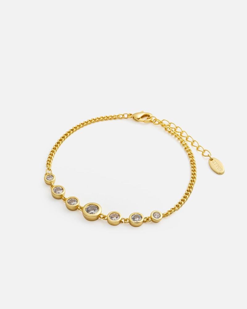 - الأساور: طقم من ثلاث اساور باللون الذهبي بتصاميم مختلفة ومرصعة بفصوص الزركون اللامعه
