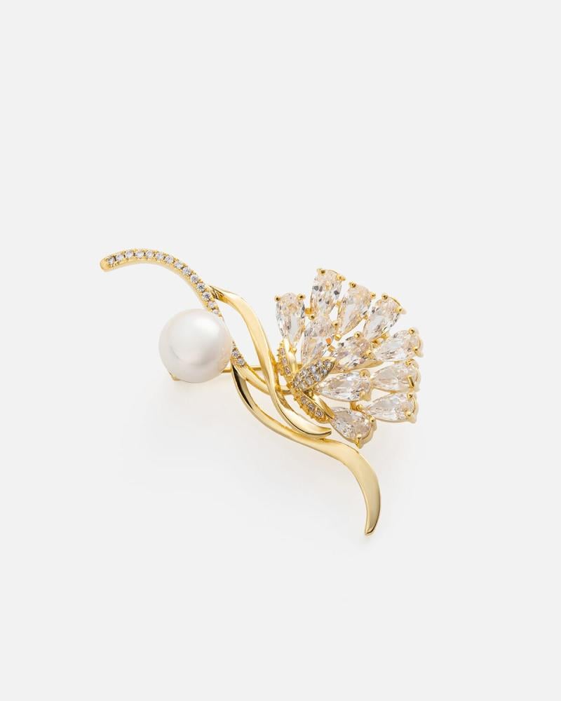 - يتميز البروش بتصميمه المميز و المرصع بفصوص الزركون اللامعه وتتزين بحجر زركون من اللؤلؤ