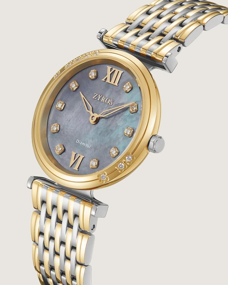 أيقونة الأناقة العصرية، بتصميم يجمع بين الفخامة والجرأة. ساعة تعكس بريق شخصيتك بفصوص من الالماس . ميناء تتناغم فيه العقارب و8 من فصوص الالماس والأرقام الرومانية ، لتمنحك قراءة واضحة للوقت و تضيف لمسة من التعقيد والتفرد. سير عملي من الستيل يمنحك راحة لا مثيل لها، وثباتًا يواكب إيقاع حياتك. "حيث يلتقي التصميم العصري باللمسة الكلاسيكية، لتكون إضافة مميزة إلى إطلالتك."