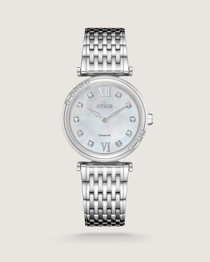 أيقونة الأناقة العصرية، بتصميم يجمع بين الفخامة والجرأة. ساعة تعكس بريق شخصيتك بفصوص من الالماس . ميناء تتناغم فيه العقارب و8 من فصوص الالماس والأرقام الرومانية ، لتمنحك قراءة واضحة للوقت و تضيف لمسة من التعقيد والتفرد. سير عملي من الستيل يمنحك راحة لا مثيل لها، وثباتًا يواكب إيقاع حياتك. "حيث يلتقي التصميم العصري باللمسة الكلاسيكية، لتكون إضافة مميزة إلى إطلالتك."