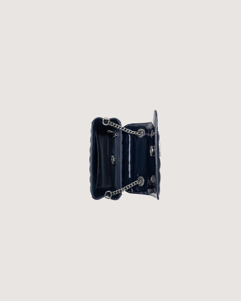 شنطة بلمسات فاخرة تعكس الأناقة العصرية، مصنوعة من خامة لامعه فريدة مع تفاصيل جلدية أنيقة. تزينها يد من المعدن والجلد بعقد متتابعة أنيقة تضفي لمسة فخامة، بينما الإغلاق بالغطاء القلاب ذو الزوايا يعزز من جاذبيتها. تصميم مثالي ولمسة راقية للإطلالات اليومية.