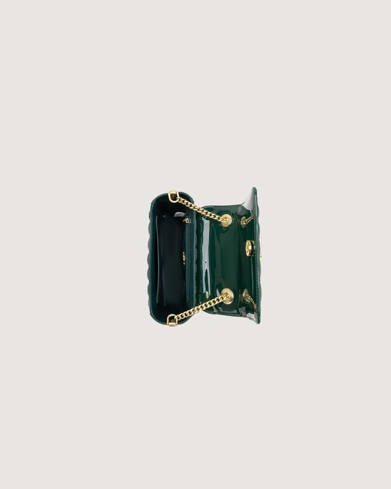 شنطة بلمسات فاخرة تعكس الأناقة العصرية، مصنوعة من خامة لامعه فريدة مع تفاصيل جلدية أنيقة. تزينها يد من المعدن والجلد بعقد متتابعة أنيقة تضفي لمسة فخامة، بينما الإغلاق بالغطاء القلاب ذو الزوايا يعزز من جاذبيتها. تصميم مثالي ولمسة راقية للإطلالات اليومية.