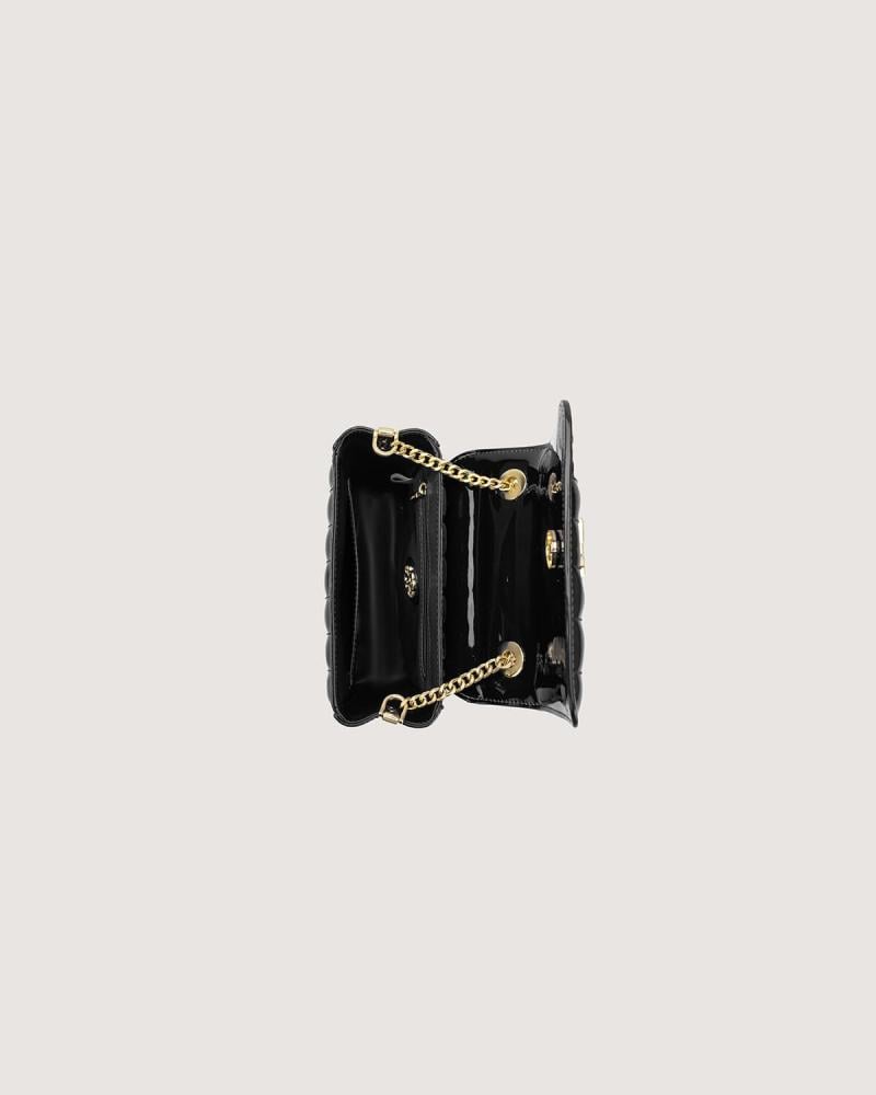 شنطة بلمسات فاخرة تعكس الأناقة العصرية، مصنوعة من خامة لامعه فريدة مع تفاصيل جلدية أنيقة. تزينها يد من المعدن والجلد بعقد متتابعة أنيقة تضفي لمسة فخامة، بينما الإغلاق بالغطاء القلاب ذو الزوايا يعزز من جاذبيتها. تصميم مثالي ولمسة راقية للإطلالات اليومية.