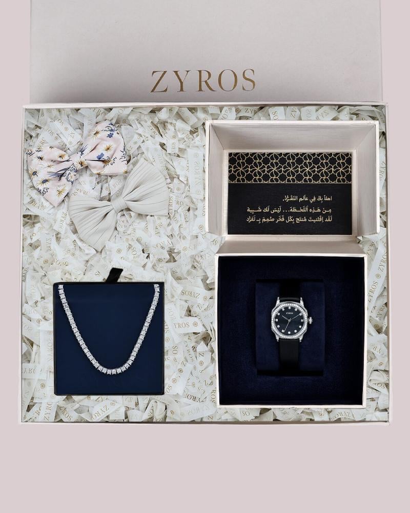 - محتويات الطقم: ساعة وسلسال و مشابك شعر