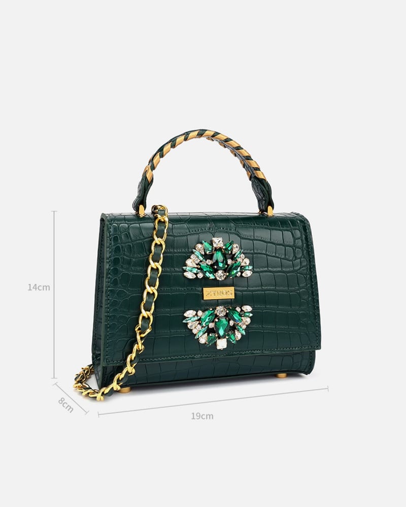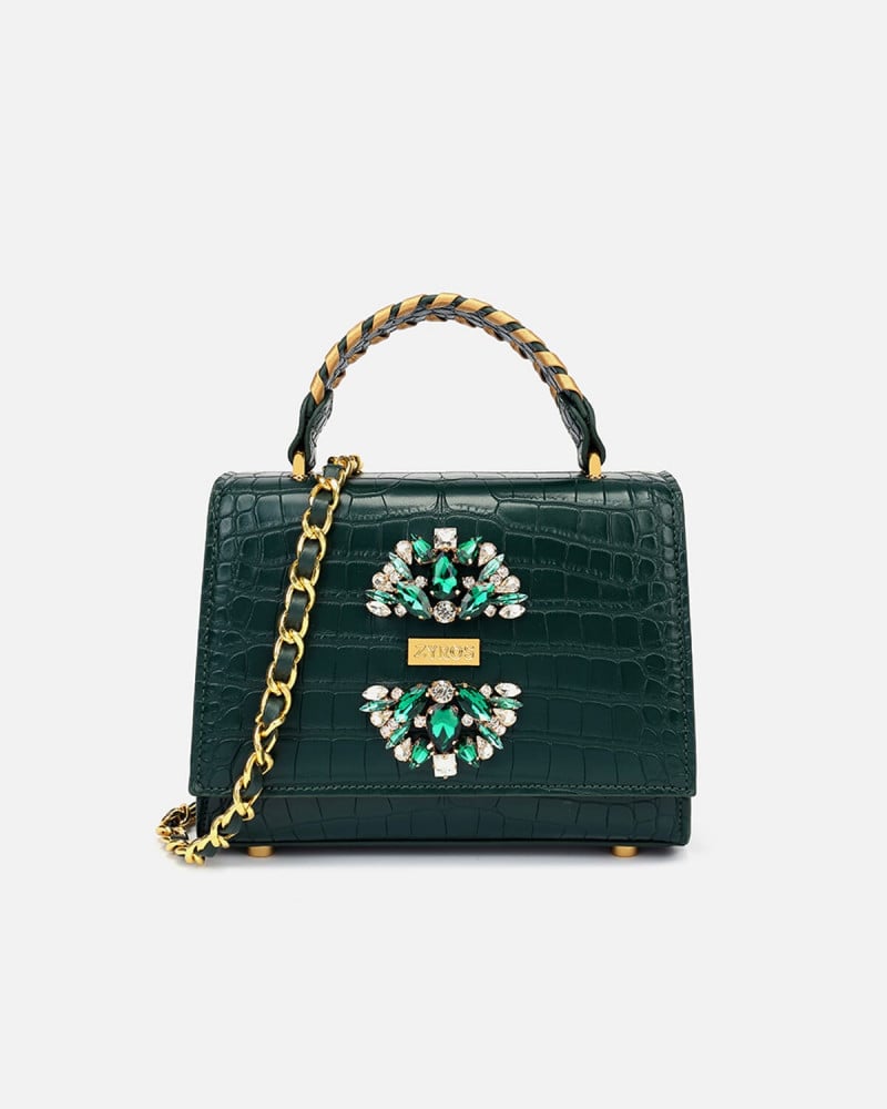 شنطة نسائيه من زايروس بتصميم عملي من الجلد بنقشه جلد التمساح بتفاصيل أنيقه باللون الأخضر، شنطه نسائيه بيد مقوسه لسهوله حملها و مرفق معها حماله كتف بتصميم سلسال عريض مع الجلد والمعدن لمزيد من التميز ، صممت الشنطه بتصميم كلاسيك تقليدي بغطاء قلاب وحليه باللون الفضي تبرز من جمال الشنطة ، يمكنك تنسيقها مع إطلاله مسائيه لطله مميزه .