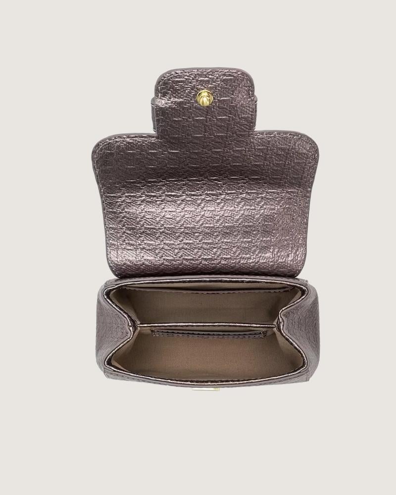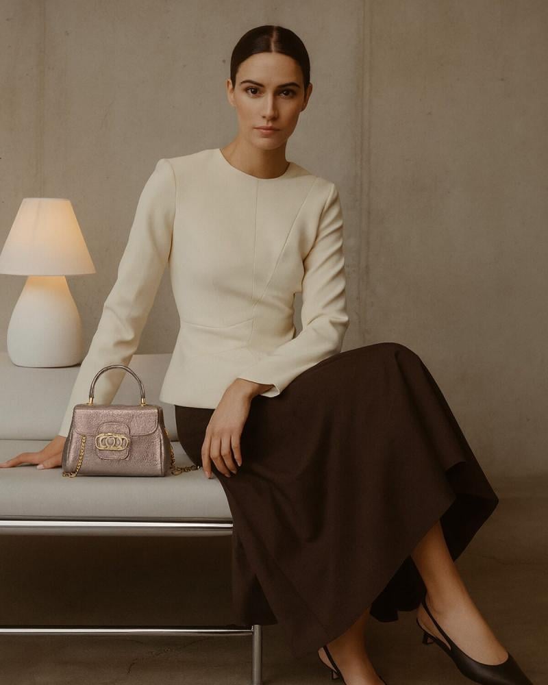 شنطة بلمسة من الغموض والفخامة، كأنها قطعة نفيسة خرجت من حقبة ملكية لتكمل إطلالتك. جلدها اللامع بنقوشه العريقة يروي قصة قوة وأناقة لا تخبو. قفلها المعدني كجوهرة ثمينة تتوسط التصميم، بينما السلسلة الذهبية تنساب برقي، كأنها وشاح من الهيبة يلف كتفك. إنها ليست مجرد حقيبة، بل سر من أسرار الجاذبية.