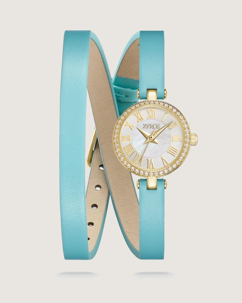 - ساعة نسائية بسير من الجلد باللون الأزرق الفاتح