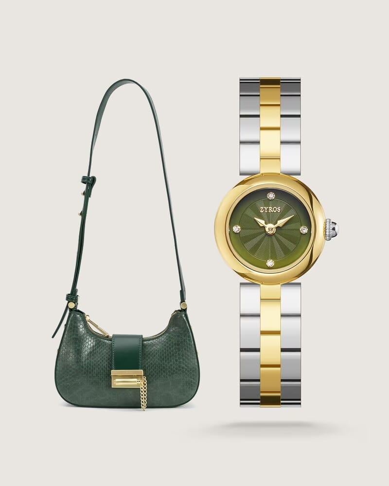 طقم هدية استثنائي، مزيج من الذوق الرفيع والفخامة اللامحدودة. شنطة مصممة بعناية لترافقها ساعة أنيقة بتفاصيل تخطف الأنفاس. هدية تُقال دون كلمات: "أنتِ تستحقين الأفضل دائمًا".