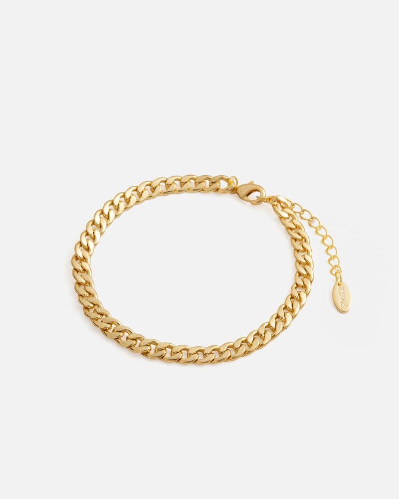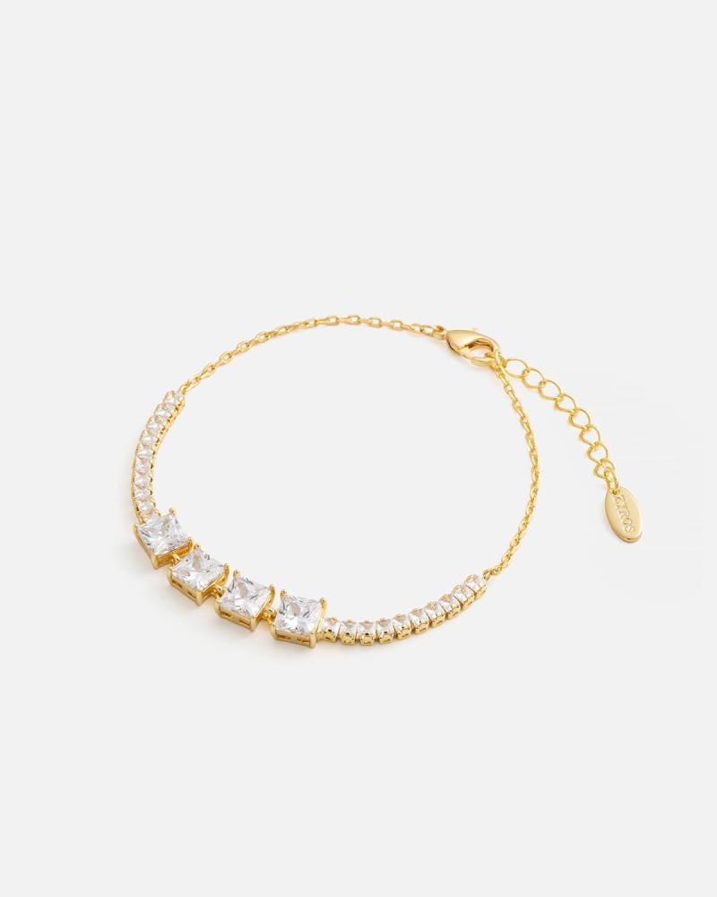 - الأساور: طقم من ثلاث اساور باللون الذهبي بتصاميم مختلفة ومرصعة بفصوص الزركون اللامعه