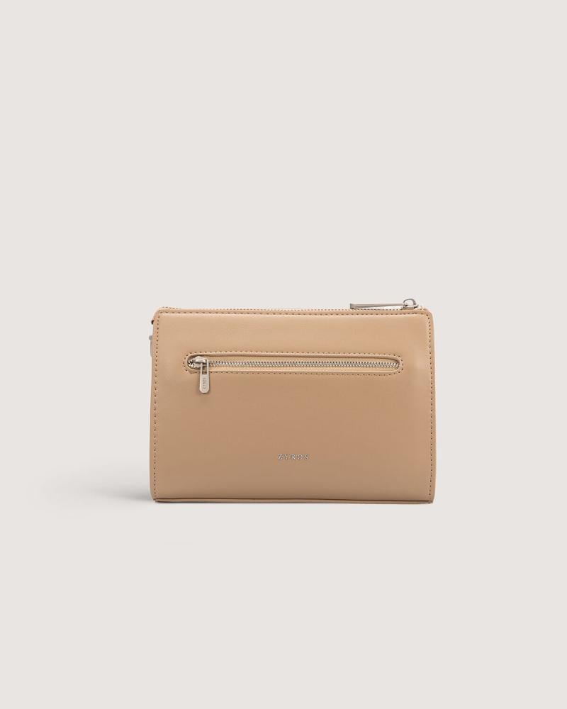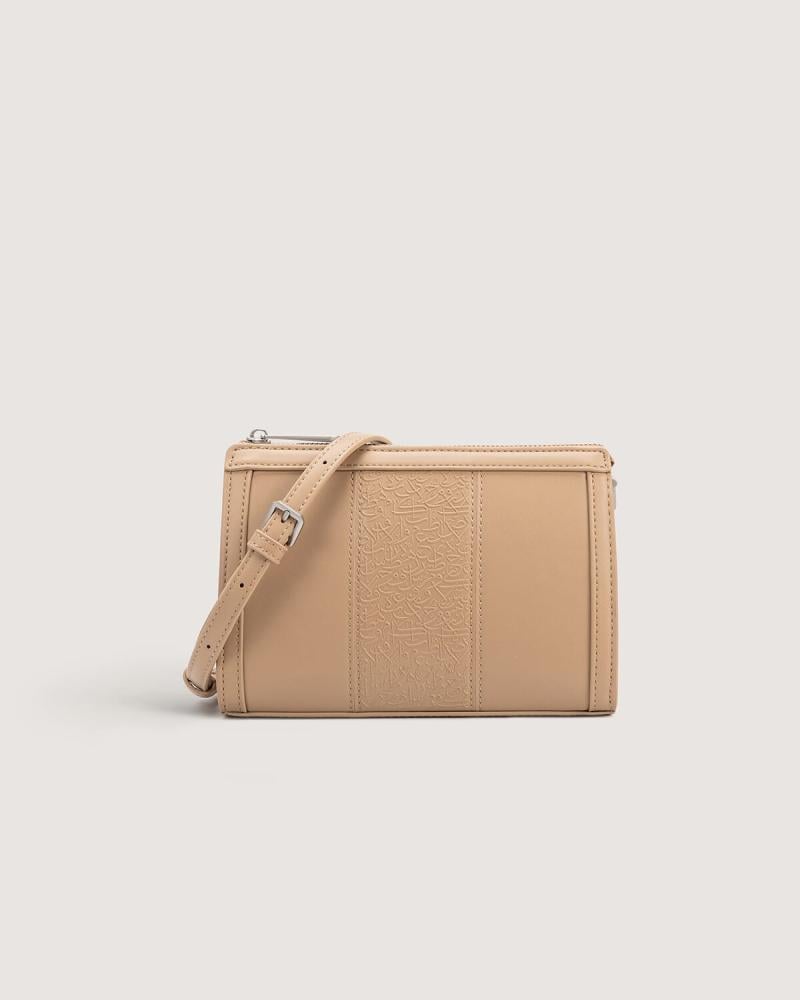 - شنطة نسائية من الجلد باللون البني يتزين بزخارف الخط العربي