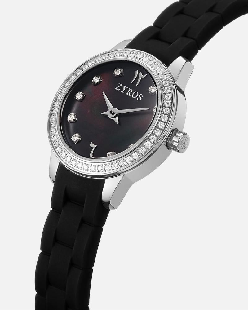هذه الساعة كتحفة تجمع بين القوة والدقة. ميناء يعكس هدوء الليل، تتراقص عليه العقارب بجرأة وكأنها سهام الزمن. ساعة تحكي بلغة لا يفهمها إلا من يعشق التفاصيل. الإطار الفولاذي المصقول والمزين بفصوص لامعه يرمز إلى ثبات الشخصية، فيما يأتي السوار المطاطي كلمسة تمرد، يليق بمعصم لا يعرف التردد. إنها ليست مجرد ساعة، بل رفيقة درب لرحلة لا تُقاس بالدقائق، بل بالإنجازات.