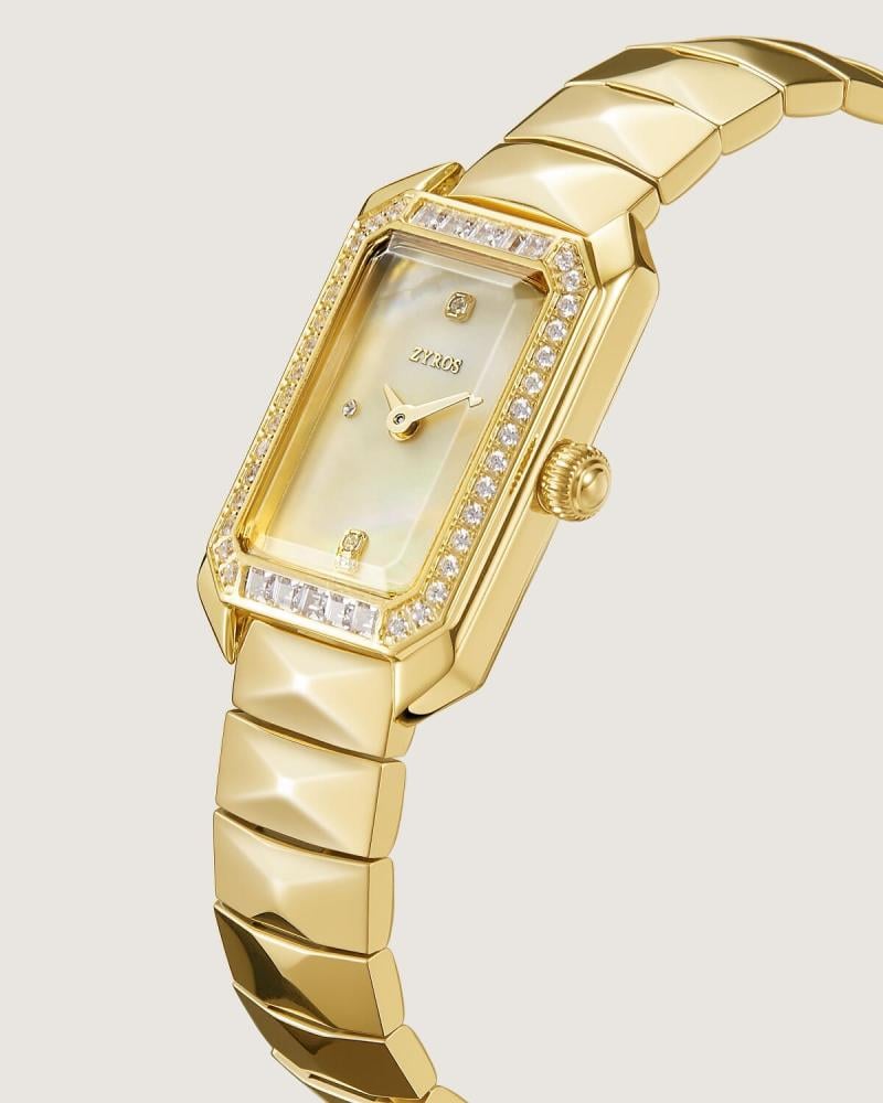 ساعة نسائية آسرة بتصميم مستوحى من سحر الأناقة، حيث يلتف سوارها الأنيق حول المعصم بانسيابية راقية، وكأنها اسوارة تنساب برشاقة. ميناء الساعة مصمم بأسلوب يعكس الفخامة والغموض، بينما تضيف التفاصيل الراقية لمسة من الجرأة والجاذبية. إنها ليست مجرد ساعة، بل قطعة فنية تتحدث بلغة الأناقة والقوة، لتمنح معصمك لمسة ساحرة لا تُقاوم.