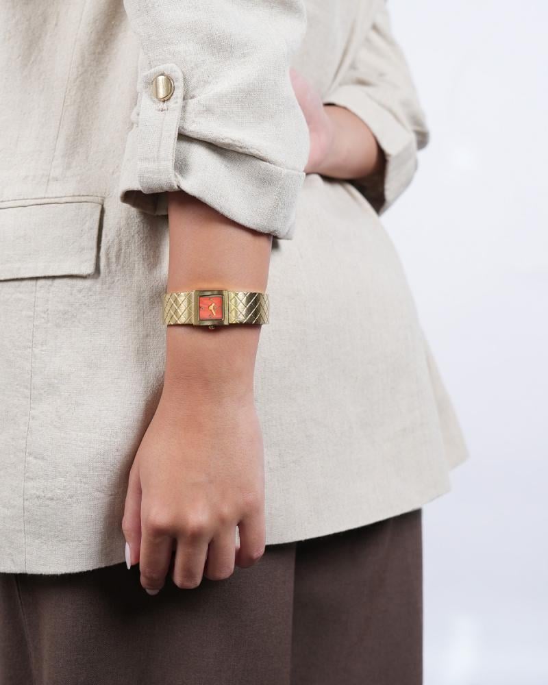 - ساعة نسائية بسير من الستيل باللون الذهبي