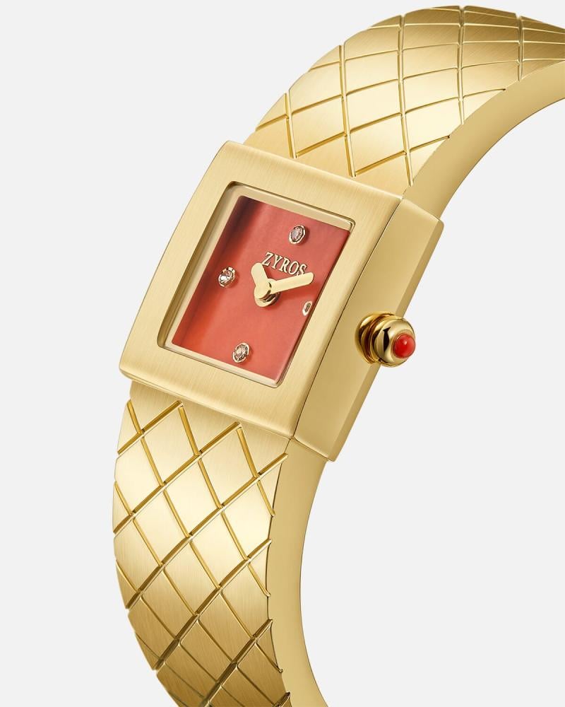 - ميناء الساعة باللون الأورنج بشكل مربع