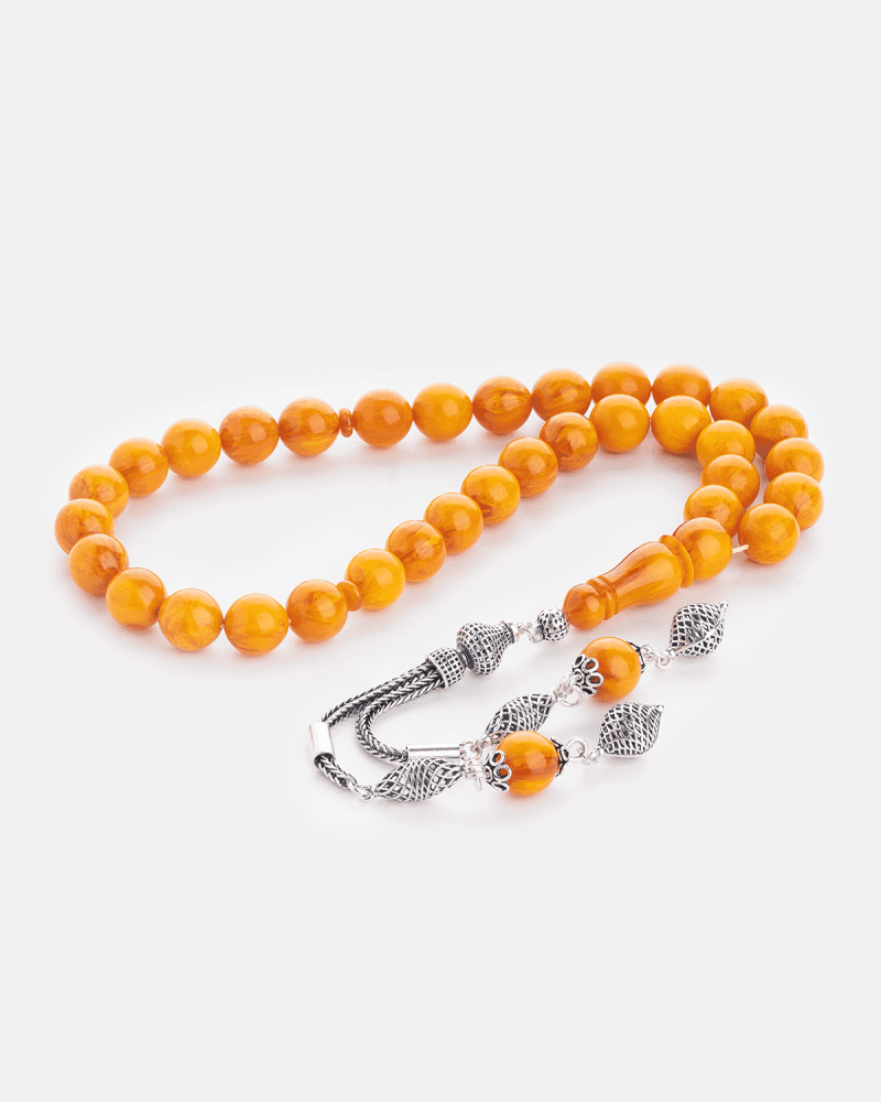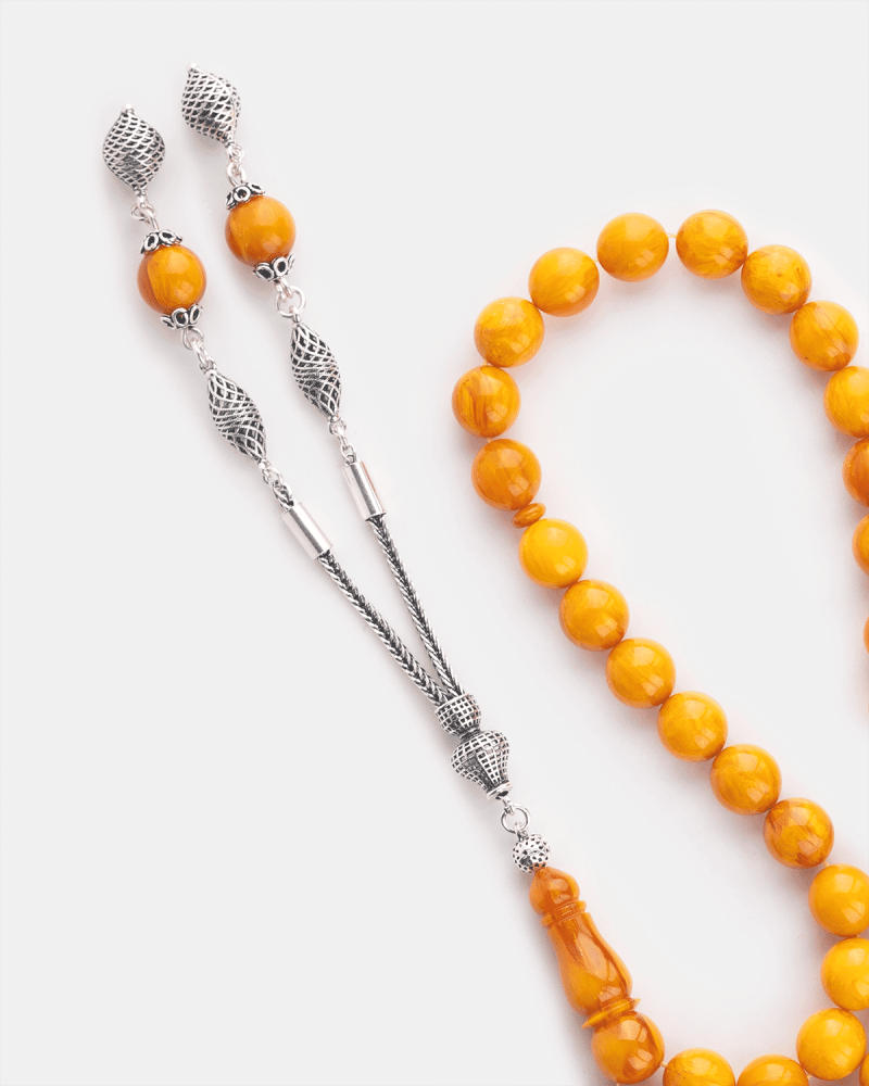 - سبحة من حجر البكلايت البلجيكي بتصميم أنيق باللون الأصفر المعرق