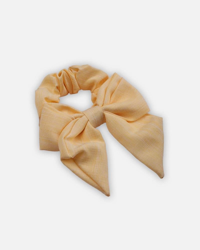 ربطة الشعر المصنوعة من قماش مطاطي مجعد، بتصميم بسيط باللون الأصفر، تضفي لمسة أنثوية ساحرة. تتميز بحجمها المناسب للارتداء اليومي، مما يجعلها خيارًا عمليًا لإضافة لمسة أنيقة وعفوية إلى تسريحات الشعر.